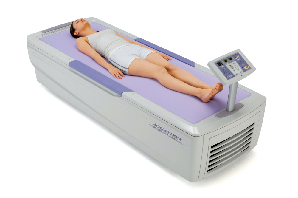 内部にお湯が入っていてジェット水流によるウォーターマッサージベッドで、衣服を着たまま使用できます。従来のリラクゼーション効果に加え、筋肉をほぐして血行の改善を促進します。柔軟性につなげます。