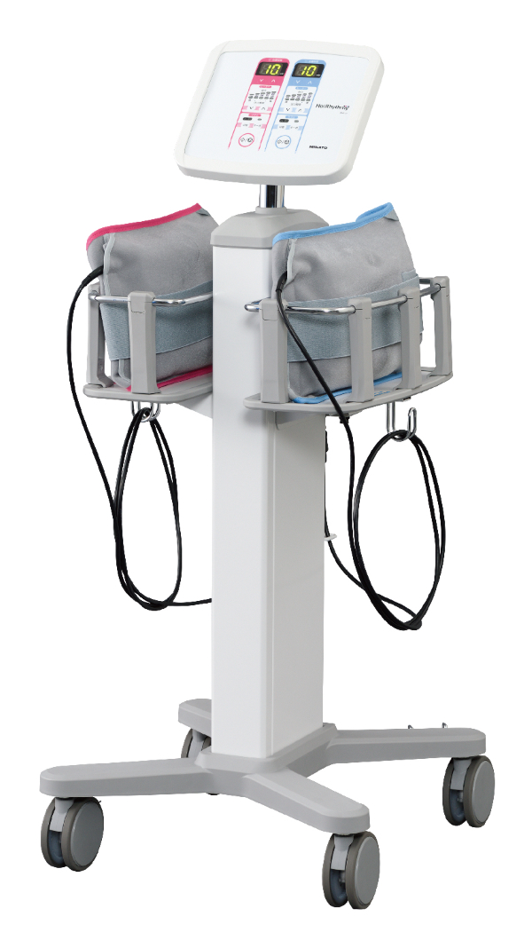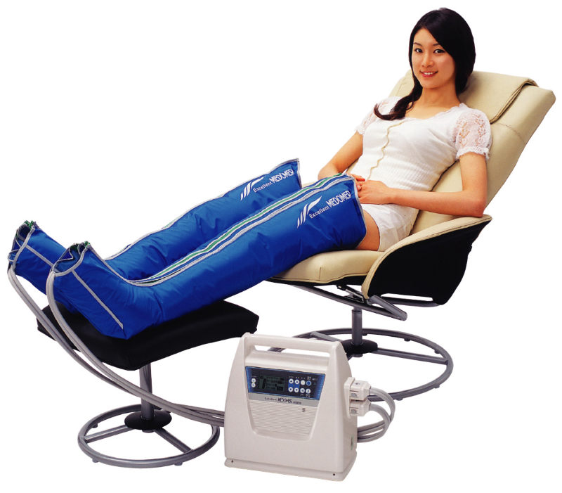 脚は心臓から遠く下の方にあるため、血液の渋滞が起こりやすいところです。歩く運動は「ふくらはぎ」の筋肉運動でたまった静脈血を心臓に押し上げるポンプの作用を促進します。メドマーは空気圧によって静脈を圧縮して、歩行運動に代わって血液の循環を促進します。